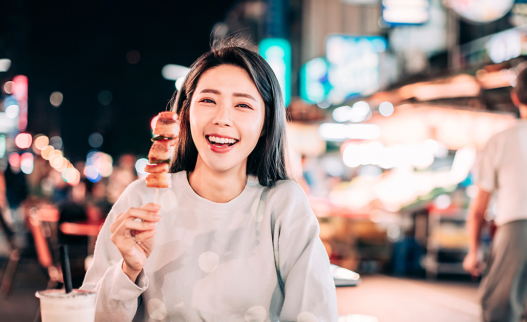 屋台で有名な台湾ですが、規模・知名度共にトップクラスなのが「士林夜市」。MRT(地下鉄)「剣潭」駅と「士林」駅の間、ランドマークでもある士林市場とその裏手の慈諴宮を中心に広がる夜市です。辺りは日中はひっそりとしていますが、日没とともに次々と屋台が姿を現し、道沿いの商店もこぞって営業を開始します。夜が深まると共に賑やかさも増していきます。
